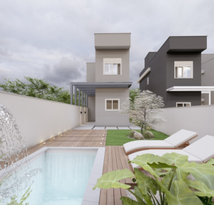 Apresento casas geminadas em Sapiranga com excelente aproveitamento de espaço e acabamento de qualidade, pensadas para oferecer conforto e funcionalidade no seu dia a dia. Cada unidade possui vaga para dois carros descoberta logo na entrada, seguida por uma sala de estar acolhedora, lavabo, sala de jantar integrada com a cozinha, que é bem ventilada e iluminada naturalmente. A lavanderia possui acesso direto ao pátio privativo, ideal para circulação de ar e atividades externas.